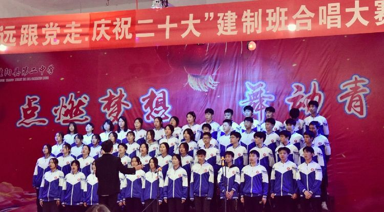 新桂阳10月21日讯(通讯员 刘一羽 黄丹)为热烈庆祝党的二十大胜利召开,加强和改进新时代学校美育工作,丰富校园文化生活,展示向真、向善、向美、向上的校园文化,体现中学生热爱祖国、朝气蓬勃、天天向上的精神风貌。10月19日下午,桂阳二中学举行“不忘初心跟党走,同心喜庆二十大” 建制班合唱比赛。