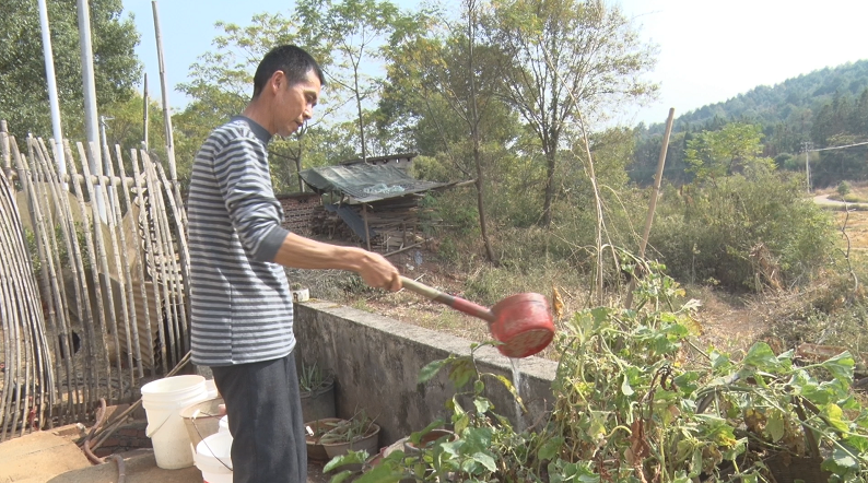 “以前我们这里这个水很紧张的,那个田里也很干,菜都种不出来了。现在嘛, 政策好嘛,党的政策、政府的政策好,帮我们这个村里都打了井。现在来说,每家每户都有水了, 喝得上水。 连(养)鸡鸭、 种菜都有水 。我们村今年两百多亩晚稻都得到了大丰收。”舂陵江镇钟家村村民刘红说。