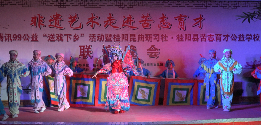 新桂阳11月8日讯(记者 刘亚平)11月5日,2022年腾讯99公益“送戏下乡”活动暨桂阳昆曲研习社·苦志育才公益学校联谊晚会举行。