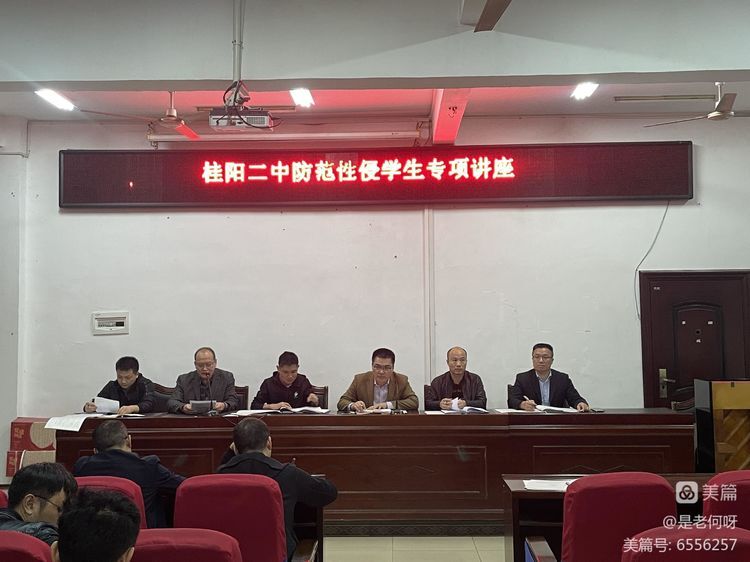 11月16日晚,桂阳二中召开防性侵专题工作部署会。会议要求:要大力宣传普及预防性侵害安全知识,通过LED、微信公众号和宣传栏等形式进行预防性侵知识宣传普及,并采取微信家长群、学校公众号推送相关文章等形式强化家长意识;要开展防性侵讲座和主题班会 ,加强学生心理健康教育;要重视心理咨询工作,对于前来咨询的同学要持续跟踪关注。