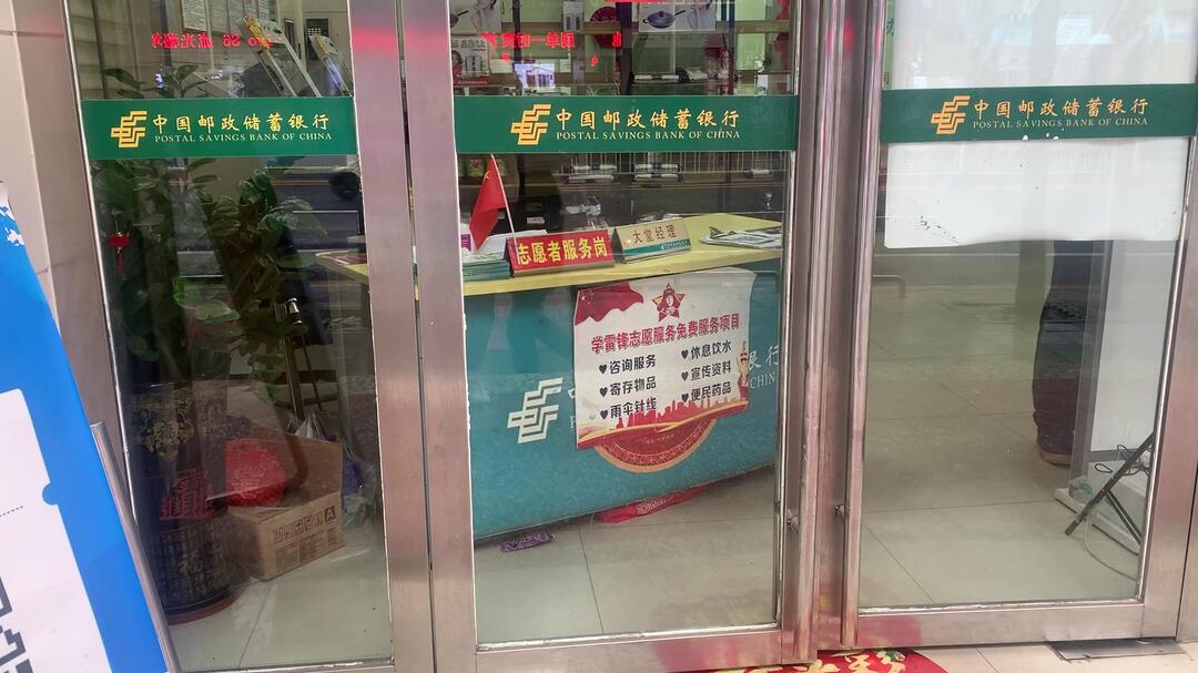 在中国邮政储蓄银行向阳路营业所,门口摆放了场所码,但入口设置的“志愿者服务岗”无人值守,“验码”流程走形式。记者还发现一名大厅工作人员未佩戴口罩,就与市民近距离处理业务。