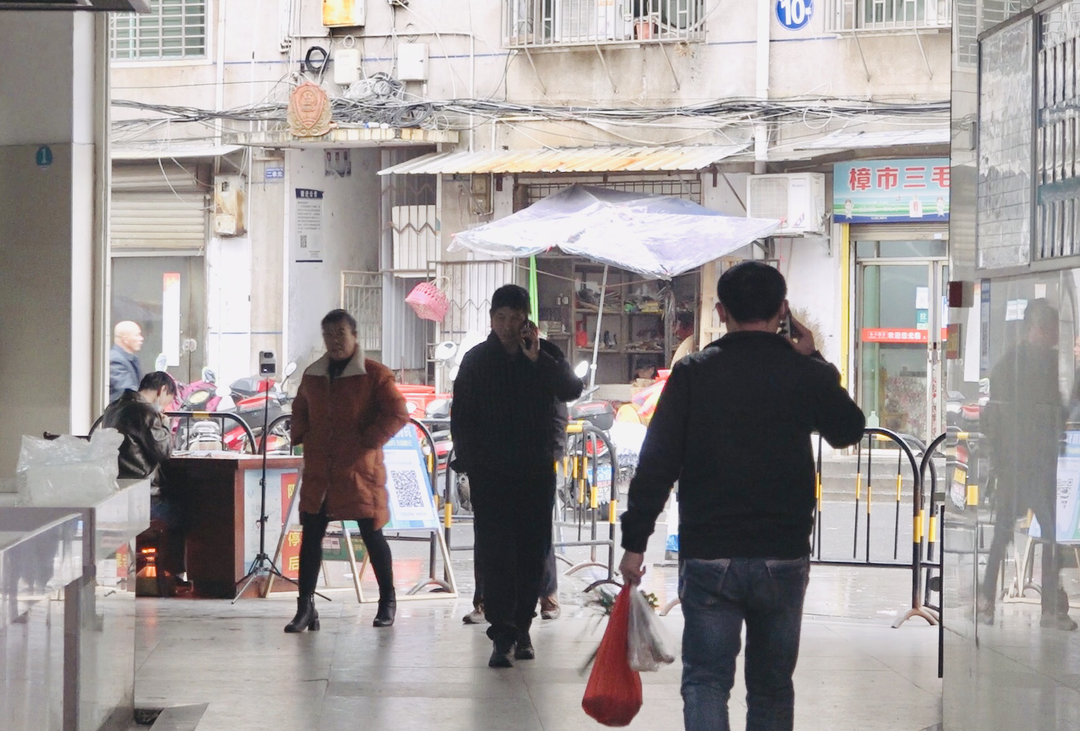 上午10点27分,记者在五云观综合市场看到,市场内大部分摊主店员和顾客存在不佩戴口罩行为。两个进出口虽有工作人员值守,但其中一个进出口工作人员开始并没有在疫情防控登记台值守,约几分钟后才到来,工作人员也未落实"一场一码,入场查码"措施,对未佩戴口罩人员的进出情况熟视无睹,不提醒,不阻拦。