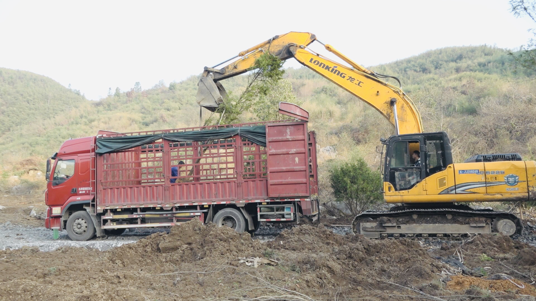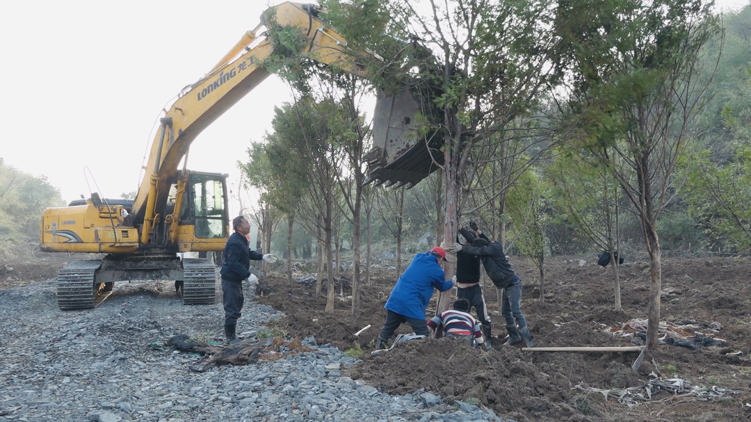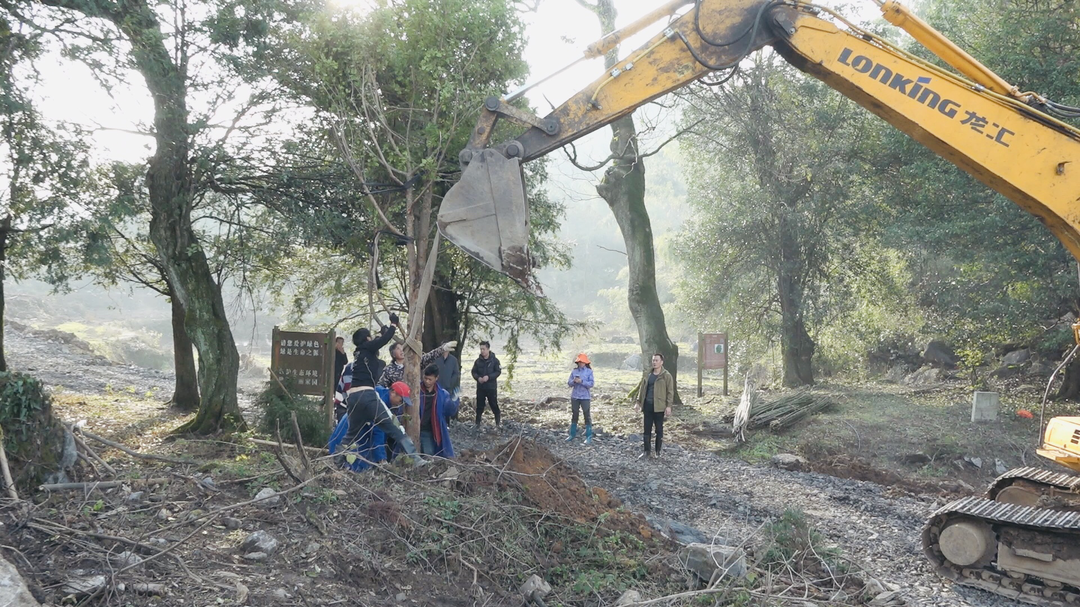 近日,记者在施工现场看到,机器马力全开、工人铆足干劲地进行移种红豆杉工作,现场一派热火朝天。当天完成了移栽200余棵树龄达19一28年的仿野生南方红豆杉,树冠有5米—6米,胸径达16一20公分的成林木,另外还种植了8棵特别珍稀大果红豆杉。