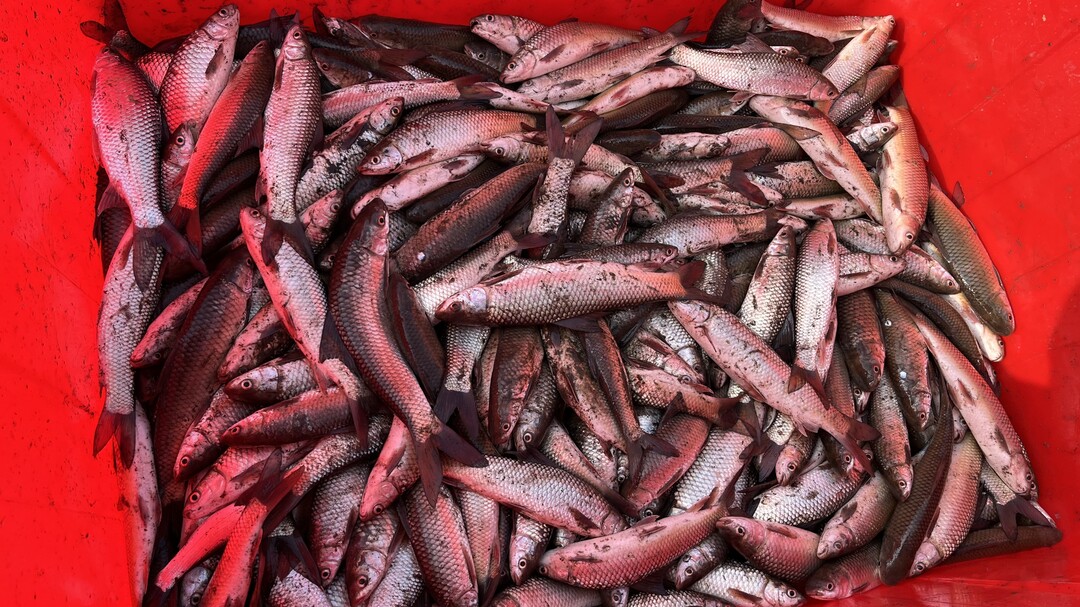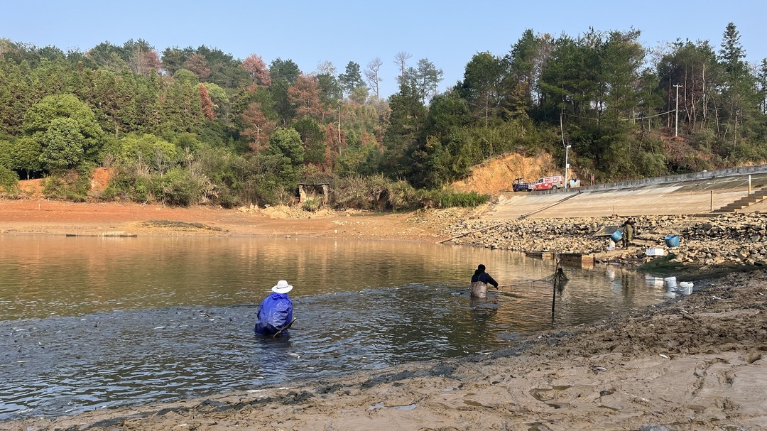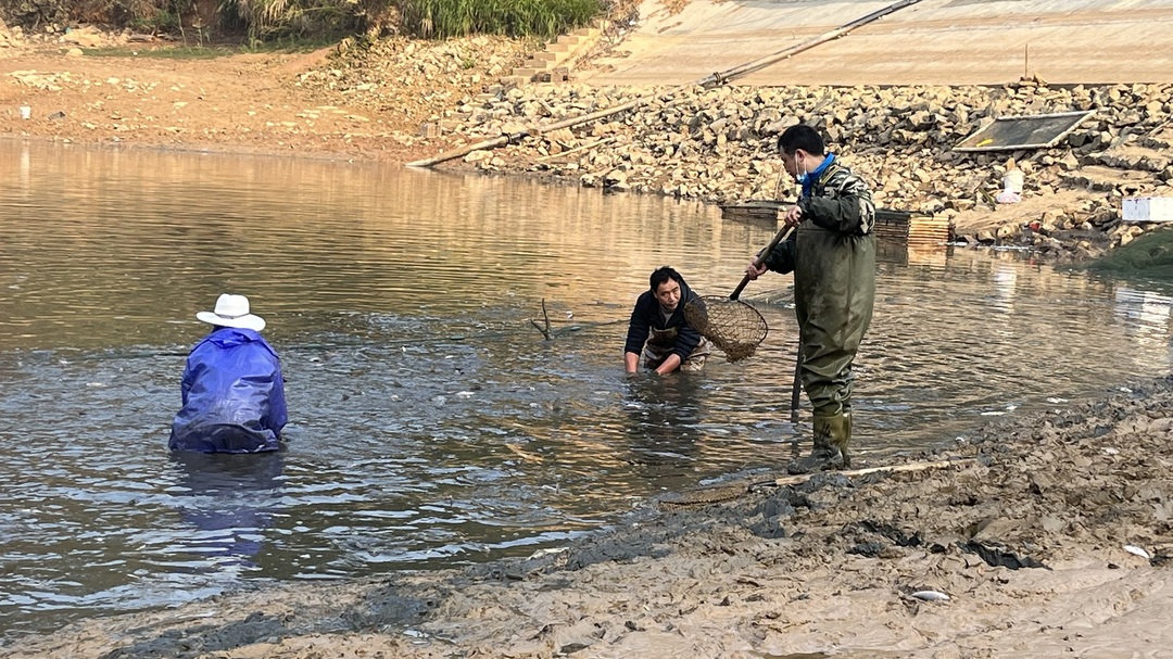 “我们从12月9日开始起鱼, 一直到12月20日为止, 每天起鱼的斤数大概有3000至5000斤,每天派送到各大超市, 以及饭店 、农庄,”桂阳县福城文化旅游有限公司渔场管理人冯宝成说。
