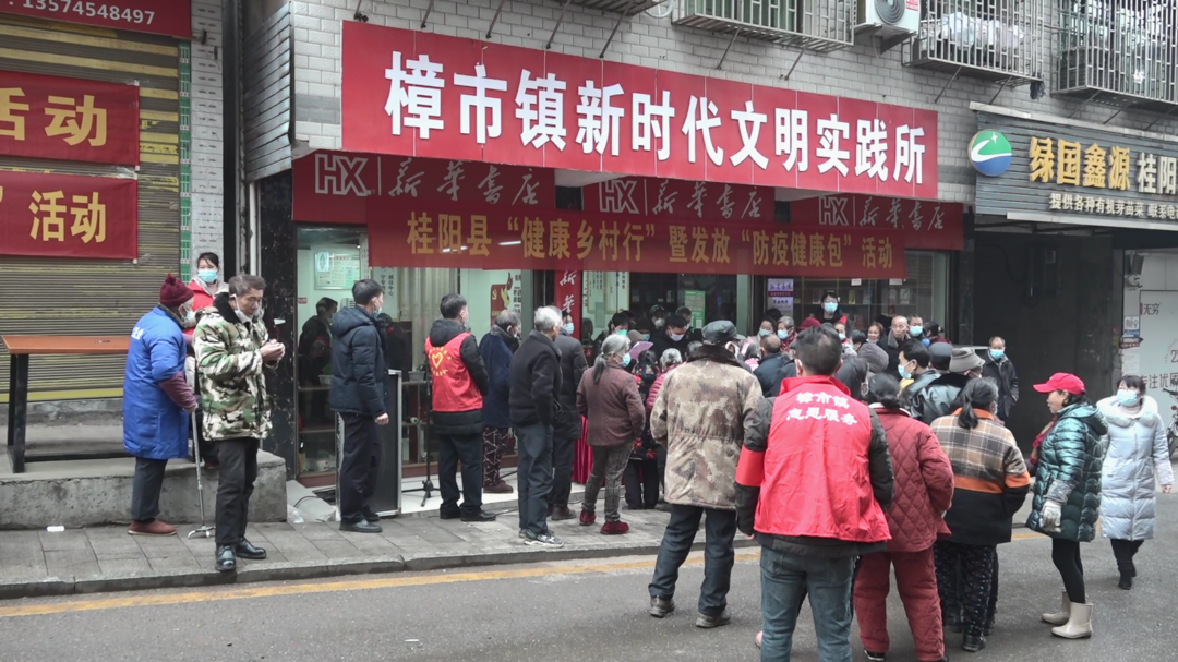 新桂阳1月3日讯(记者 邓琴 何禹军)1月2日,我县在樟市镇举行“健康乡村行”暨发放“防疫健康包”活动,现场将600份“防疫健康包”免费发放到特殊群体、易感人群手中,为老年人的身体健康保驾护航。当天,樟市镇卫生院的医护人员还走进居民家中,将“防疫健康包”送上门,并讲解防疫知识。