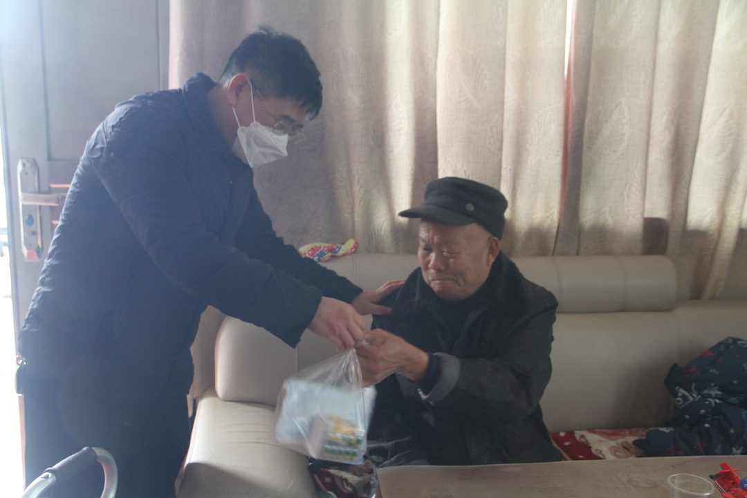在正和镇朝阳村,由驻村工作队与村干部组成的"党员先锋队"来到70多岁的罗万庭老人家中,为他送上防疫药品与物资。为了摸清群众用药需求,此前,我县已发动各级村党组织全面摸清患有合并基础性疾病的65岁以上老年人、孕产妇、孤寡老人和残疾人等重点人员的健康状况,并建立工作台账,根据登记信息进行送医送药,切实保障农村地区重点人群用药需求。