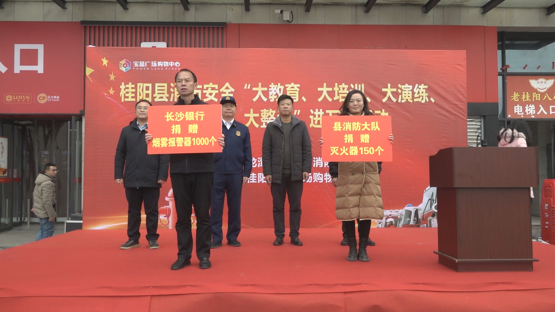 新桂阳1月19日讯(记者 陈英)为做好春节、“两会”期间消防安全防护,1月18日,龙潭街道联合县消防救援大队在宝蓝广场开展“消防安全大教育、大培训、大演练、大警示、大整治”进万家活动。