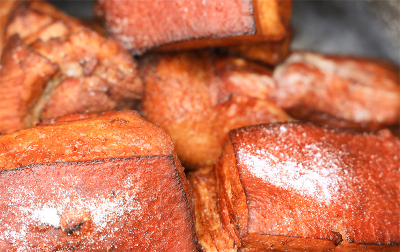 (记者 陈勇)新春佳节将至,年味渐浓,桂阳人家家户户开始忙碌着炸过年肉,又叫“扣肉”。油炸后的过年肉色泽红艳、外表酥脆,可蒸、可炒,是桂阳人新春佳节家宴上必吃的一道美味菜肴。