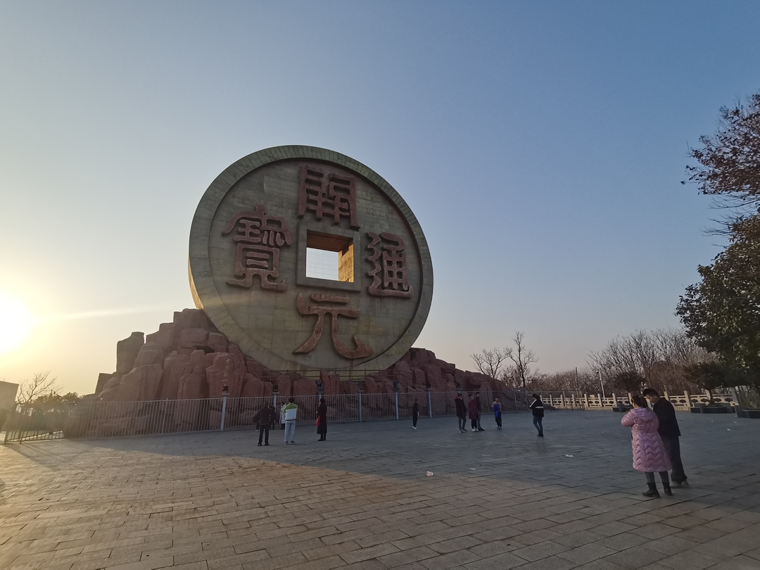 在矿山公园的铜钱币景点,游客可以看世界上最大的铜钱币雕塑,长40米、高27米,甚是壮观。不少游客前来打卡拍照,成为春节期间的一处网红打卡地。