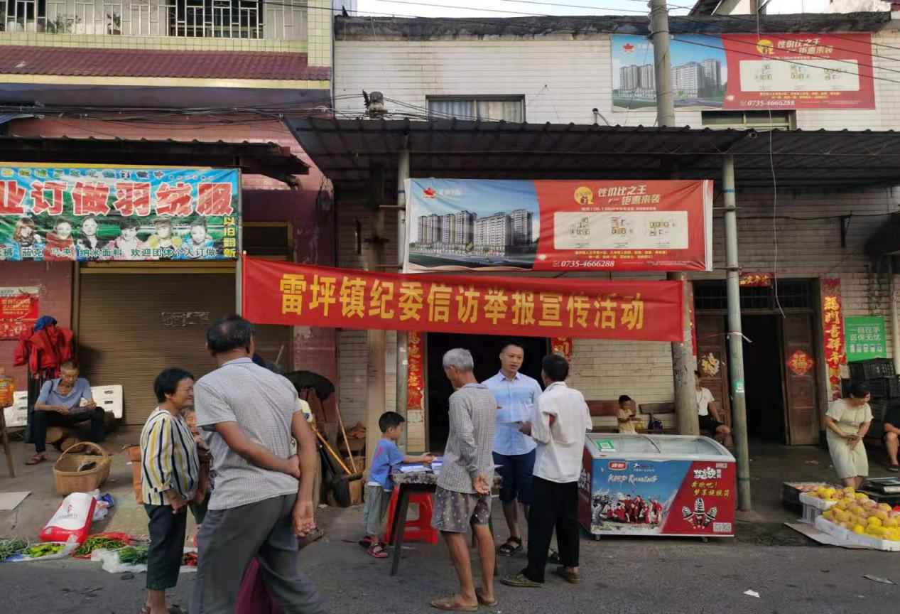 为进一步畅通信访举报渠道,有效引导群众依法、如实、正确、有效举报,使群众更高效行使监督权利,桂阳县雷坪镇纪委在赶集日,通过悬挂横幅、发放宣传册、现场接访、当场答疑等形式,引导群众从“要举报”向“会举报”转变。此次宣传活动发放纪检监察信访举报宣传资料150余份,现场为群众答疑解惑6人次。