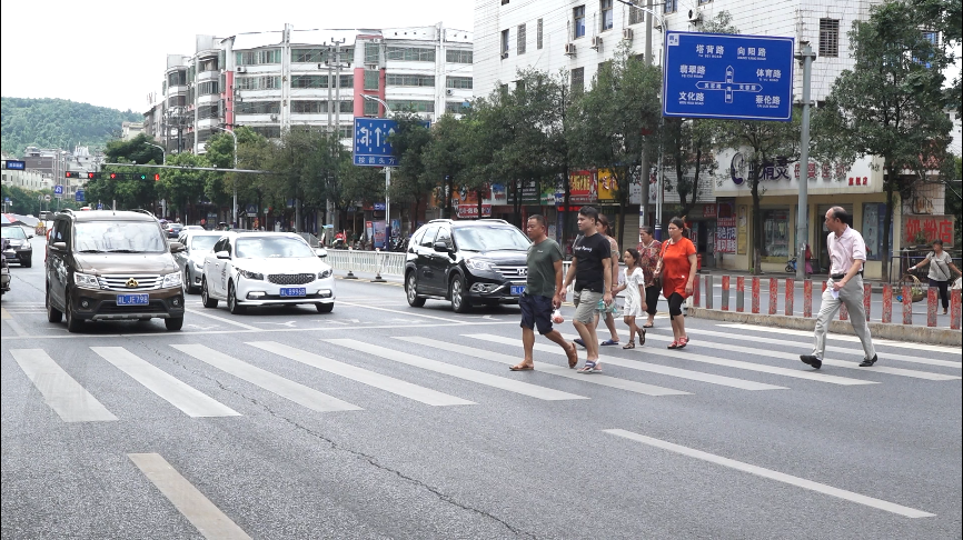 8月6日,记者在欧阳海大道妇幼保健院门口观察到,仅仅半小时,来往的车辆将近千台。虽然没有红绿灯,但在这条斑马线前,当有行人过马路时, 车辆都主动礼让行人。