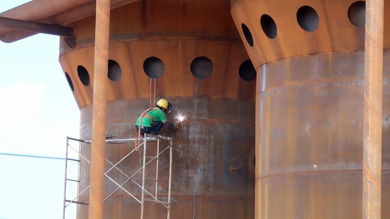 近日,记者来到亿鑫工贸项目建设现场,看到厂房、生产线主体已建成,工人们正往来忙着搅拌水泥、焊接设备。