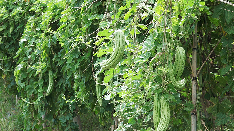 现在是本地蔬菜上市淡季,王必英的菜地里仍然种植了不少苦瓜和线瓜。每天早上5点多钟她就雇请农户按照需求量摘好这些蔬菜送到超市去,当场结清货款,每天都能销售200至300斤左右。