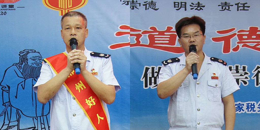 在学模范环节中,大家聆听了两名税务干部——我县首届道德模范候选人廖井军和我县2019年新时代文明实践标兵龙国雄的先进事迹,引导大家正确认识对待自己的职业,把爱岗敬业和孝老爱亲作为自己的人生追求,享受工作和生活带来的快乐和充实感。