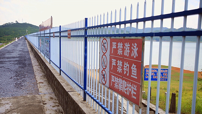 学生溺水事件通常发生在户外的山塘水库。在方元水库,库区周边尤其是各个路口都设置了“水源保护区及禁止游泳”等警示标志牌,并在库区水源保护区周围设立了隔离防护围栏。此外,还实现了库区视频监控和广播全覆盖。