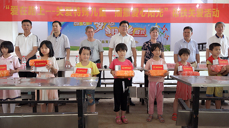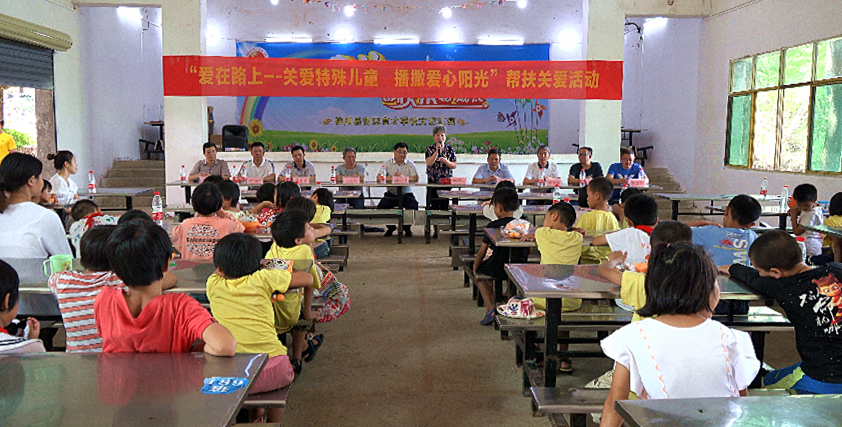 新桂阳7月17日讯(实习记者 欧阳宇轩)7月16日,市县民政局、教育基金会、慈善总会等多部门联合组织到苦志育才学校开展“关爱特殊儿童 播撒爱心阳光”帮扶关爱活动。