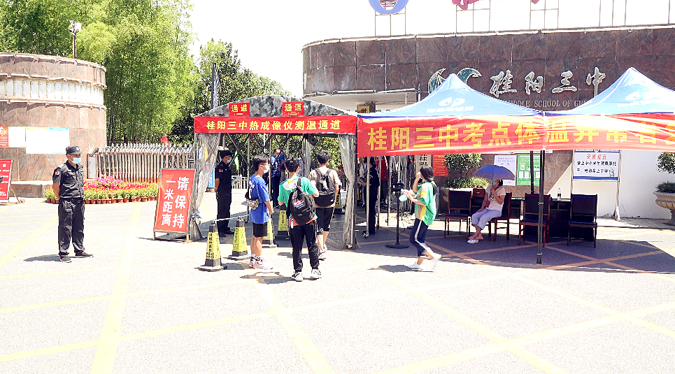 本次考试设置了桂阳三中、桂阳一中、鹿峰中学、蒙泉学校、龙潭中学、士杰学校六个考点,各考点都设置备用考室和备用隔离考室,进入考场的考生均需配戴口罩、进行体温测量。