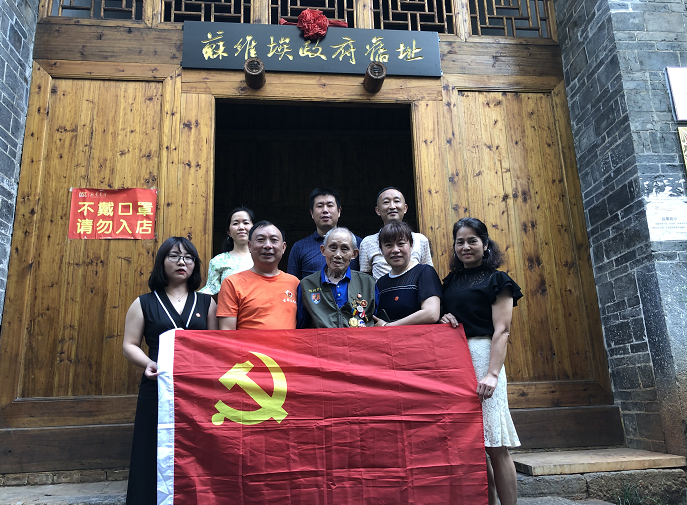 新桂阳7月15日讯(通讯员 邓井付 邱纬)7月13日下午,桂阳县古郡志愿者协会党支部书记、会长谭宜达带领支部5名党员志愿者和2名入党积极分子,搀扶着抗战老兵刘福泰老人来到桂阳县苏维埃政府旧址参观学习,缅怀先烈,回顾历史。