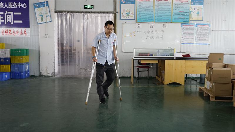 这次,好不容易有就业的机会,肖卫兵说什么都要去试一试。第二天,肖卫兵在县人社局工作人员的陪同下,拄着拐杖来到工业园区省级就业扶贫基地慧慧电子厂。