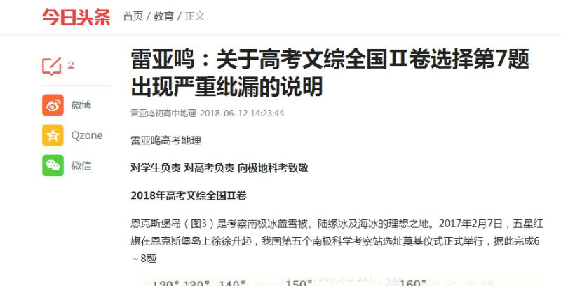 辟谣文章:关于高考文综全国II卷选择第7题出现严重纰漏的说明
