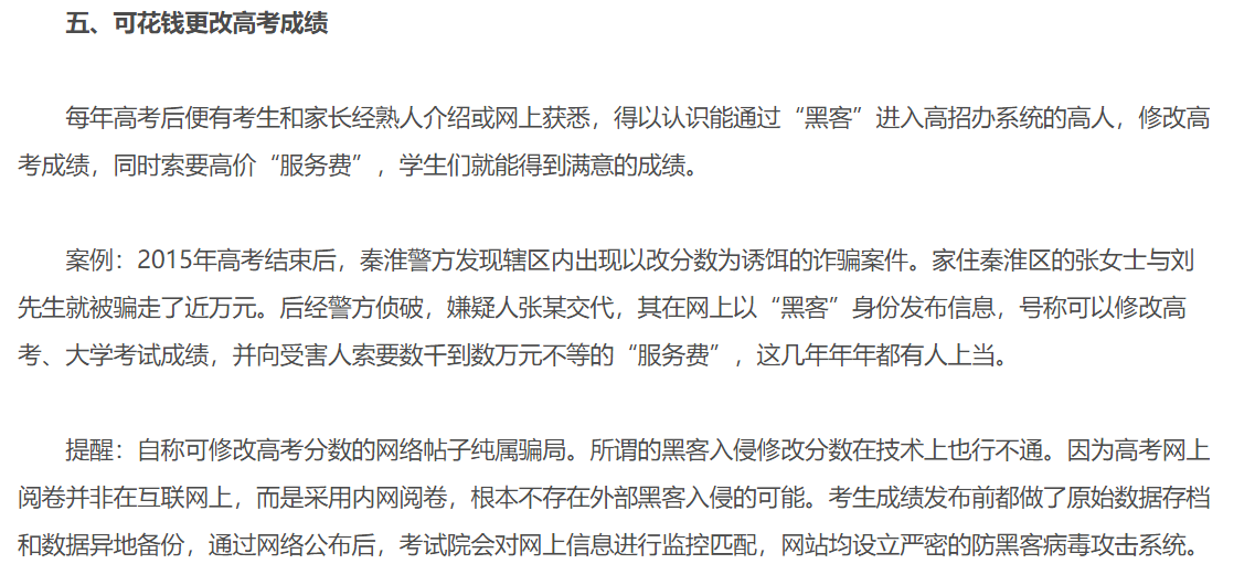 关键词:熟人、黑客、花钱、更改、高考、成绩