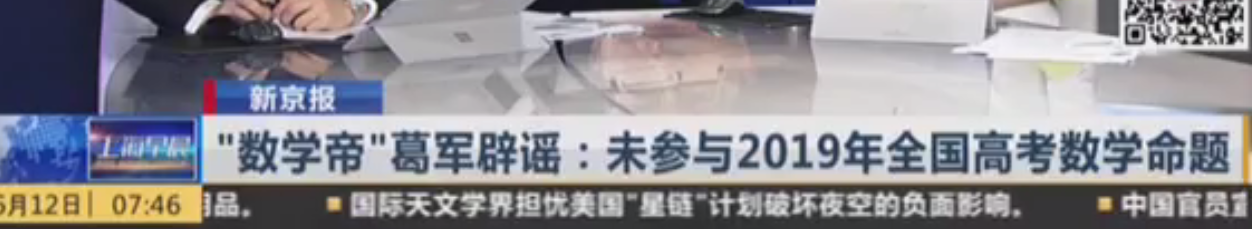 辟谣报道:“数学帝”葛军辟谣:未参与2019年全国高考数学题目