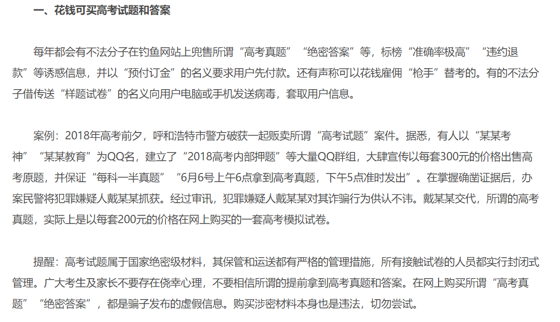 谣言 1:花钱可买“高考真题”“绝密答案”