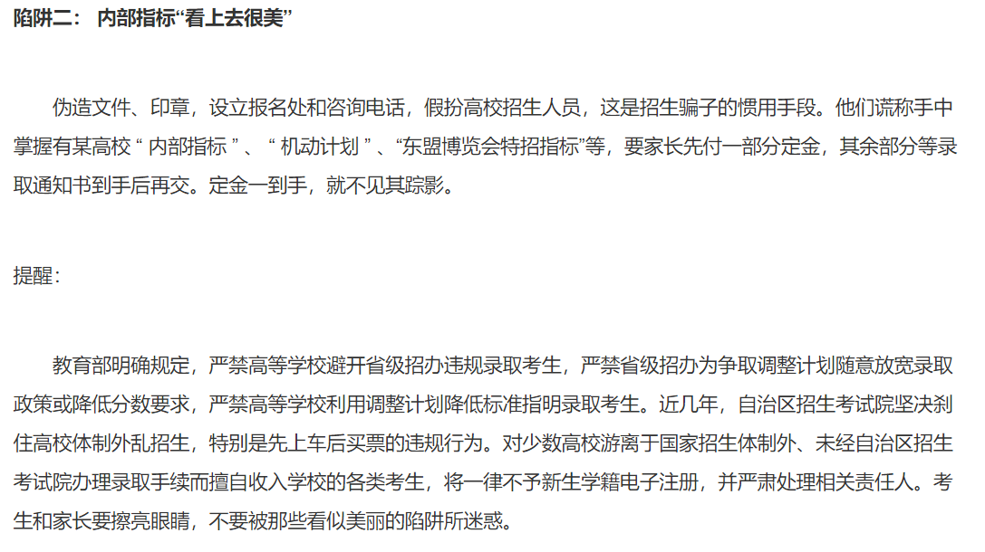 辟谣文章:广西考试院特别提醒:警惕招生陷阱 谨防上当受骗