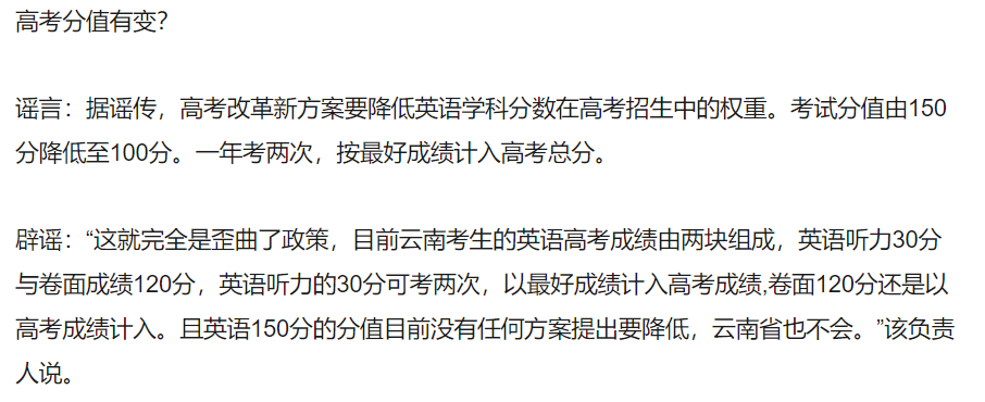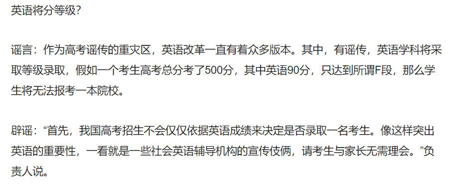 辟谣文章: “英语”要退出中、高考,是“谣言”还是“事实”?