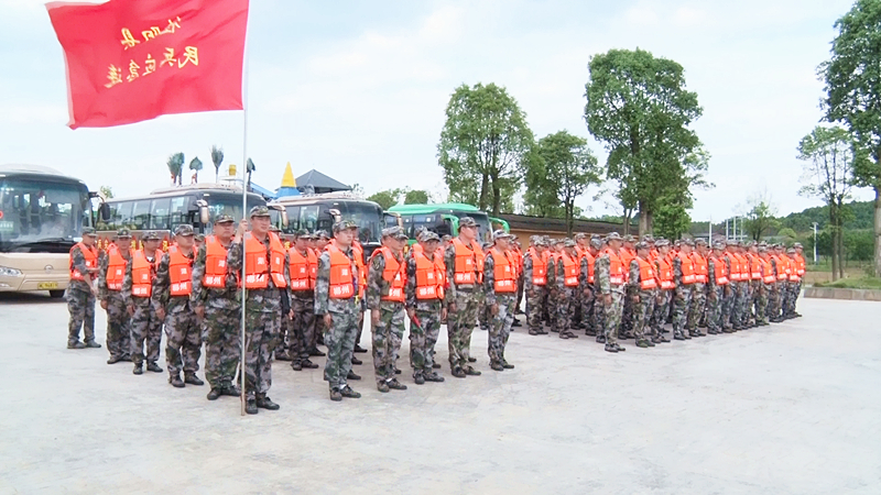 新桂阳7月9日讯(实习记者 欧阳宇轩)7月8日,县人武部组织民兵应急分队到望湖山庄开展抗洪抢险演练。