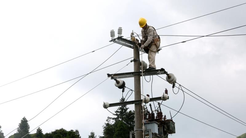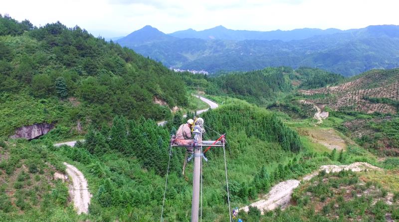 “我们每天早上5点半就要出门工作,需要背起20多斤的工具到上电杆,一次要待4个小时, 想喝水了都要用绳索吊上来”国网桂阳县供电公司天塘山供电所台区经理颜世军告诉记者。