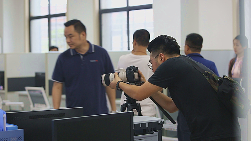 媒体团记者们来到县人社局互联网+就业超市,详细了解我县疫情后贫困户返乡就业情况。