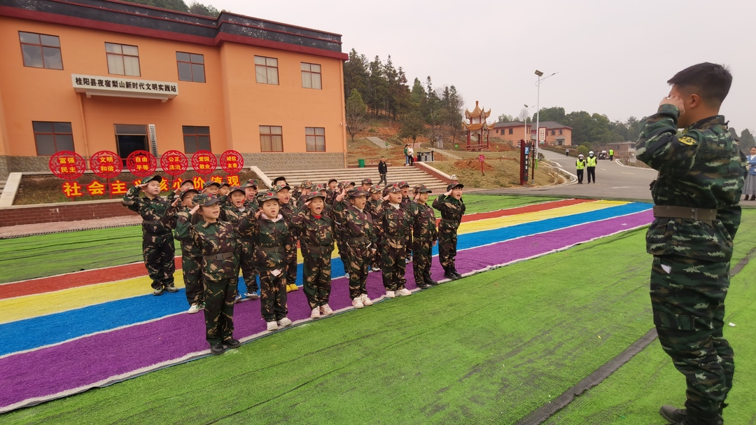 新桂阳2月28日讯(记者 廖诗卉 何禹军 实习记者 周立志)近日,在夜宿梨山新时代文明实践站前,一场别开生面的研学活动在这里开展。小朋友们身着军装,与家长们一起进行抱木下蹲、匍匐前进等体验活动,学习领会红军战士们坚韧不拔、自强不息、勇往直前的革命精神,让红色基因代代相传。
