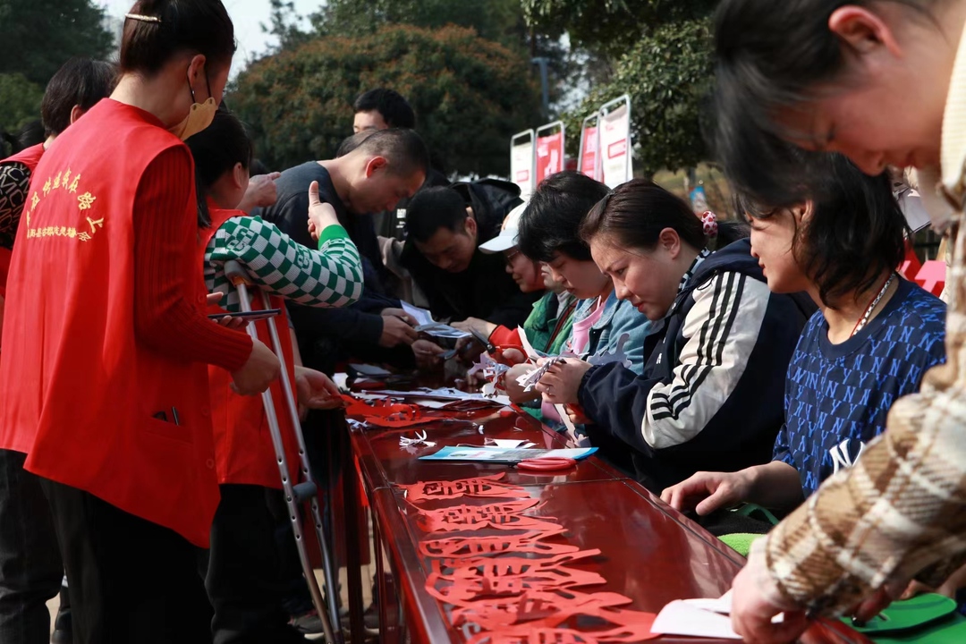 活动现场,一把小小的剪刀、一张薄薄的红纸,翻转折叠,不一会儿,活灵活现的“瑞兔迎春”“蝴蝶报喜”就跃然纸上。路过的居民被琳琅满目的剪纸吸引,纷纷驻足欣赏挑选。剪纸作品义卖筹得资金将用来开展助残帮扶活动。
