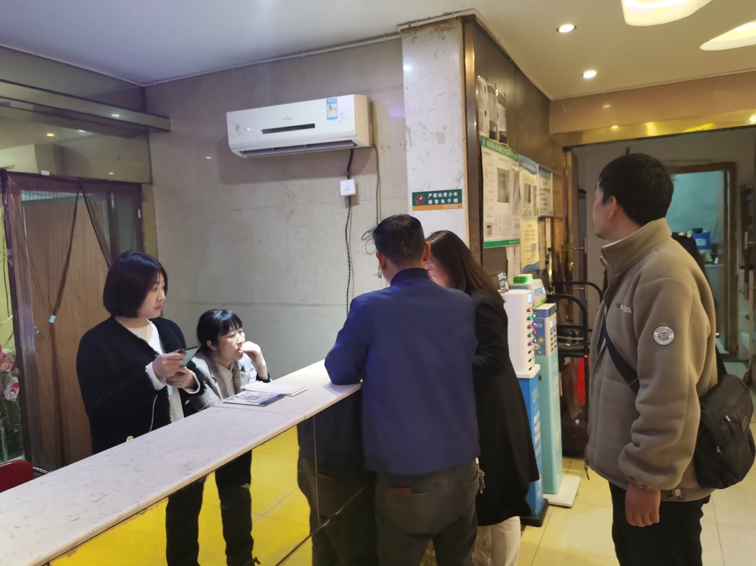 新桂阳3月7日讯(实习记者 周立志)为落实全县消防安全专项整治“百日攻坚”行动,3月6日晚,县文旅广体局联合县消防救援大队共同开展消防安全“暗访”行动,对文娱场所进行消防安全检查。