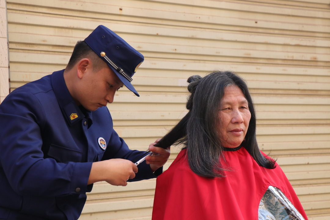 消防志愿者们还将“消防服务驿站”搬到各社区、村组,上门入户为群众排查消防安全隐患,讲解消防知识,送上“平安大礼包”,帮助居民清理空调、修理小家电。搭建“临时理发店”,为群众义务理发。并清理枯枝落叶、杂物垃圾,让环境面貌焕然一新,以实际行动书写新时代“火焰蓝”雷锋故事。