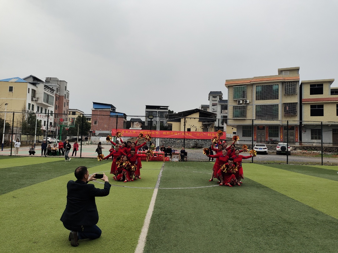 活动以社区下辖的自然村为参赛单位,共有6支参赛队伍参加,活动中,40余名参赛妇女展示了自己利用春耕农忙间隙排练的节目,既有激情澎湃的广场舞,也有充满趣味的游戏,为现场居民献上了一场热闹精彩的精神文化盛宴。