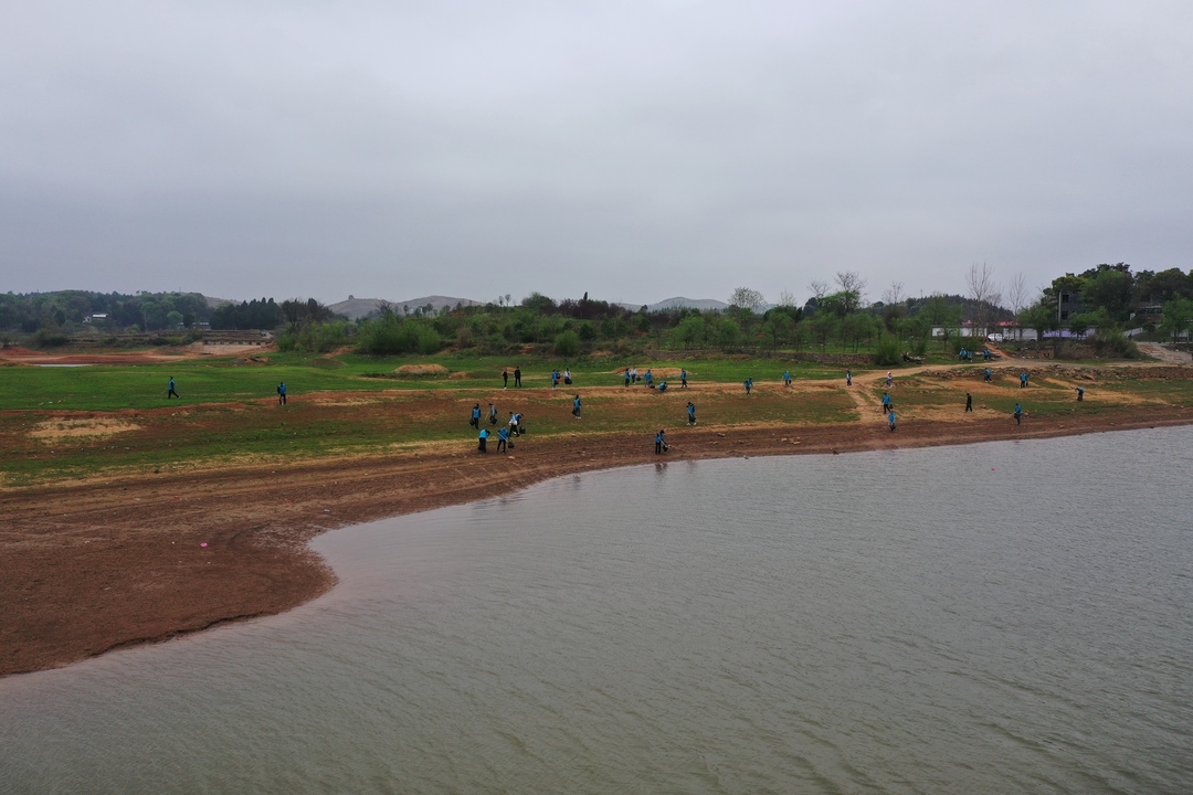 在舂陵江舍市河段,志愿者们手持夹钳、扫帚、垃圾袋,采取逐段式排查、地毯式清理等方式,将沿岸的各类垃圾杂物及枯枝死草捡拾清理,并分类收集到垃圾桶中。用实际行动和汗水换来了河道两岸的干净整洁。