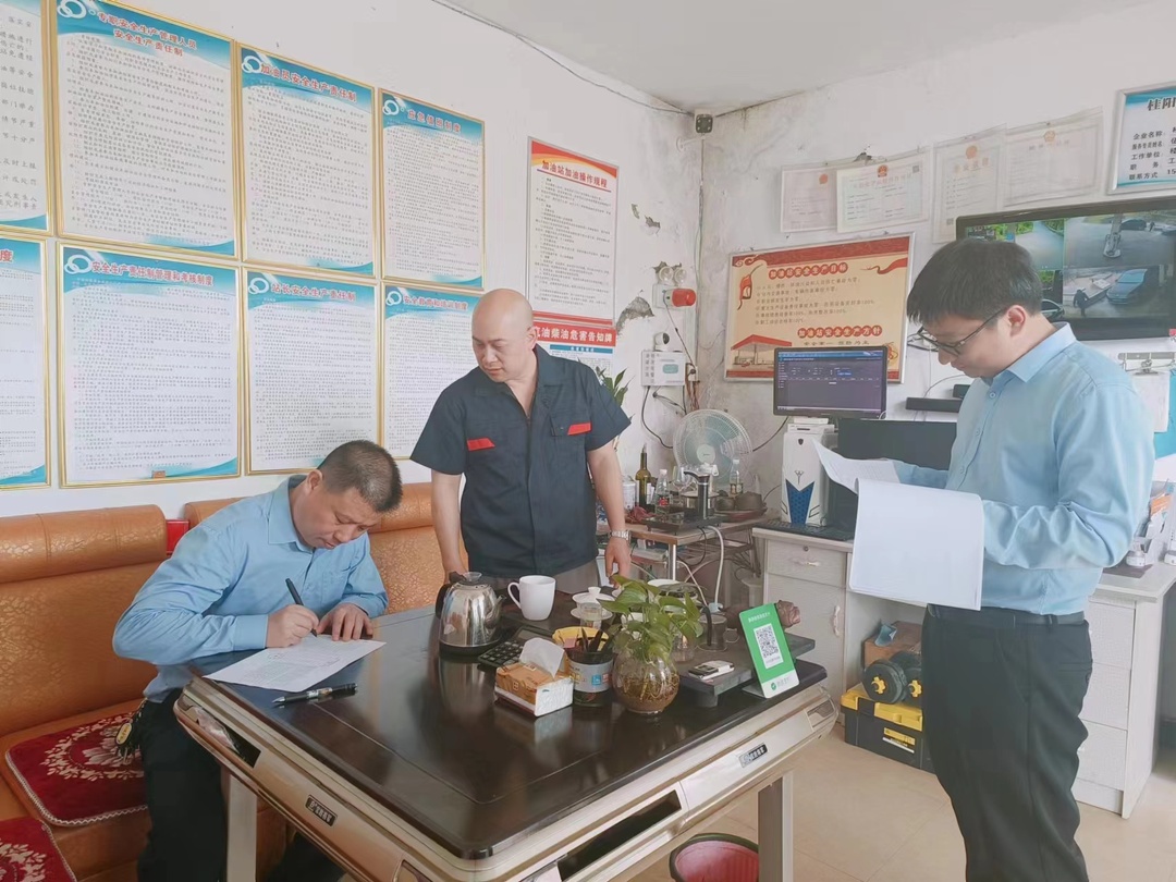 新桂阳 4月14日讯 (通讯员 彭光文 刘骁扬)为切实做好全县商贸流通领域安全生产工作,4月12日-13日,县商务局联合属地派出所对县城区和黄沙坪、太和、荷叶、敖泉、和平、桥市等乡镇街道的加油站开展散装汽油、戴帽工程、反恐设备安装情况专项督导检查。