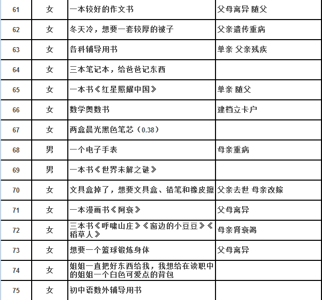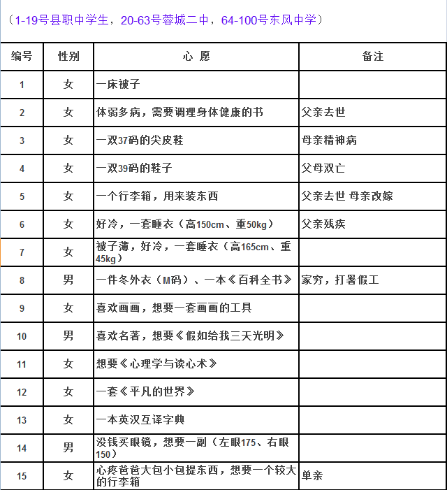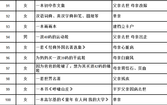 100个贫困孩子的微心愿,100颗待温暖的心;