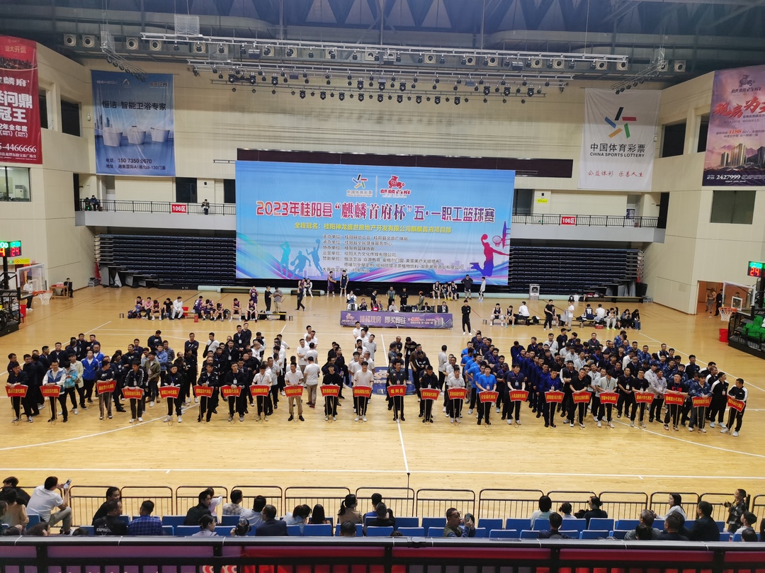新桂阳4月17日讯(记者 周立志)4月14日晚,我县2023年“五一”职工篮球赛在全民健身中心篮球馆开赛。