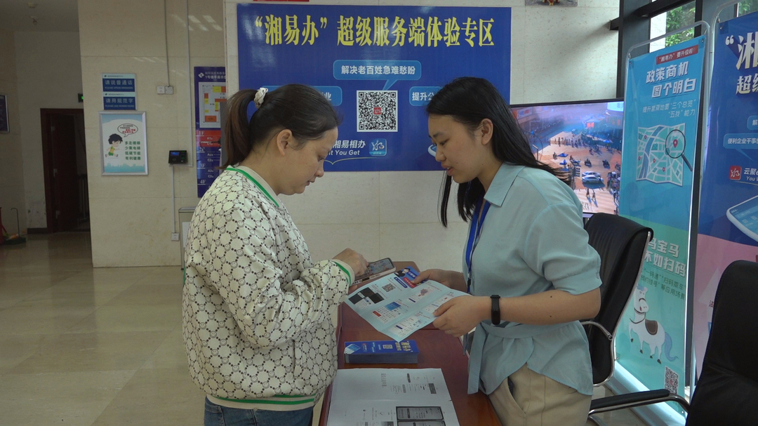 县政务服务中心党组成员、副主任李雪花介绍道,“‘湘易办’超级服务端汇聚了全省各级各部门的政务服务, 生活服务事项, 整合了公安、 民政、 人社、 教育等各类办事平台。 企业群众只要登录‘湘易办’这一个入口, 就能实现‘一机在手、一键登录、一网通办、一次办好’。”
