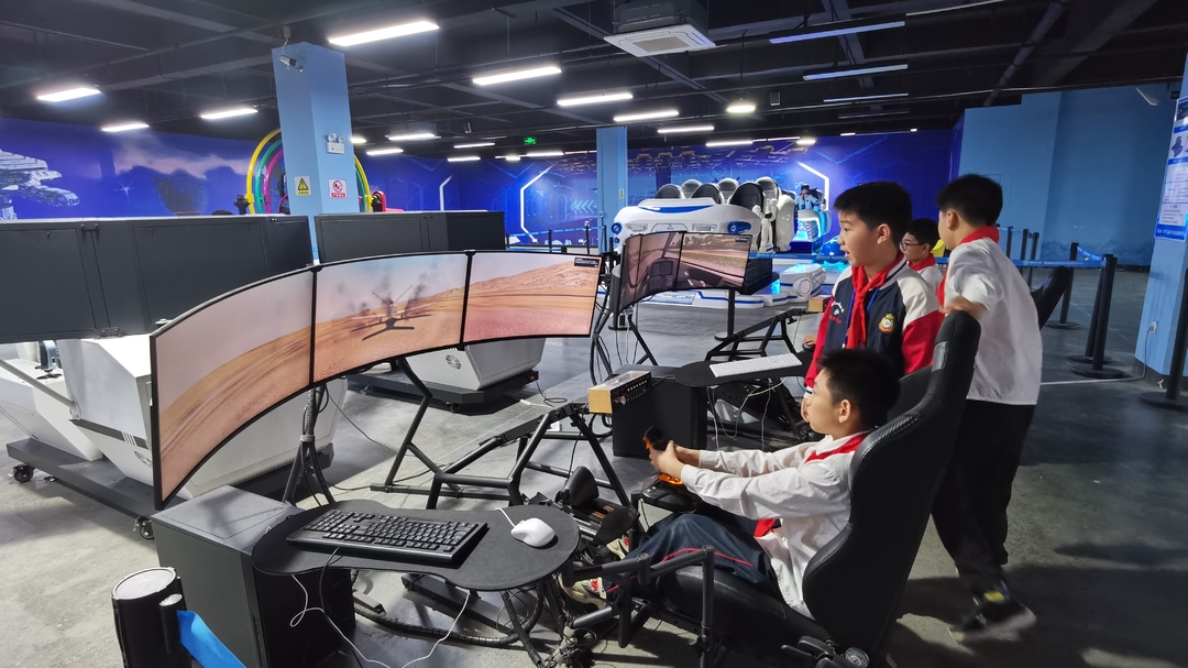 孩子们还在科普馆内实地体验了VR太空飞行、无人机穿越竞赛等活动,尝试用无人机编程操作无人机完成技能空投项目,增强了同学们勇于登攀、敢于超越的进取意识。“发展航天事业、建设航天强国”的航天梦也在同学们心中扎下了根。
