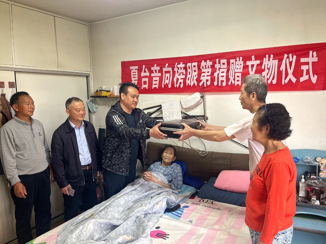 在长沙夏台音老人家中,莲塘镇镇政府、大湾村村委及老人亲属为夏台音送去了玉竹、水果、牛奶等慰问物资和慰问金,并详细询问了她的身体健康、日常生活等情况。随后,举行了简单的文物捐赠仪式,夏台音向榜眼第捐赠了夏寿田亲书扇面、家族照片等珍贵文物。