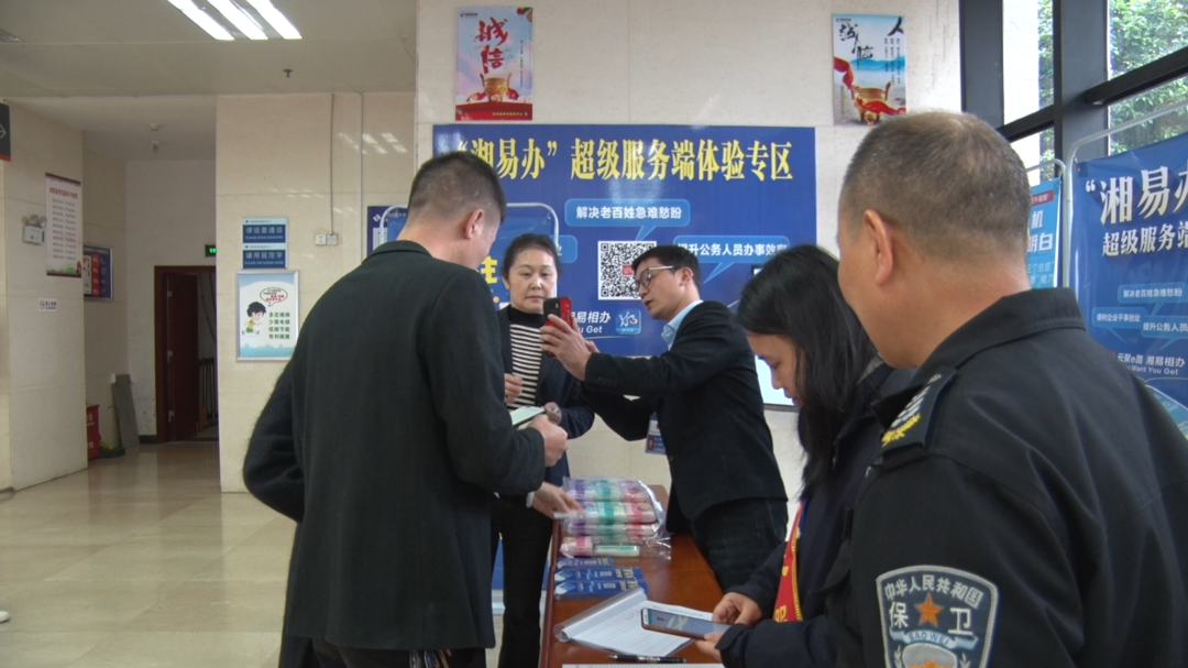 “湘易办超级服务端,使用手机就可办理各类事务, 实现随身可办,更加便民。”政务服务中心业务指导股股长唐海勇说。