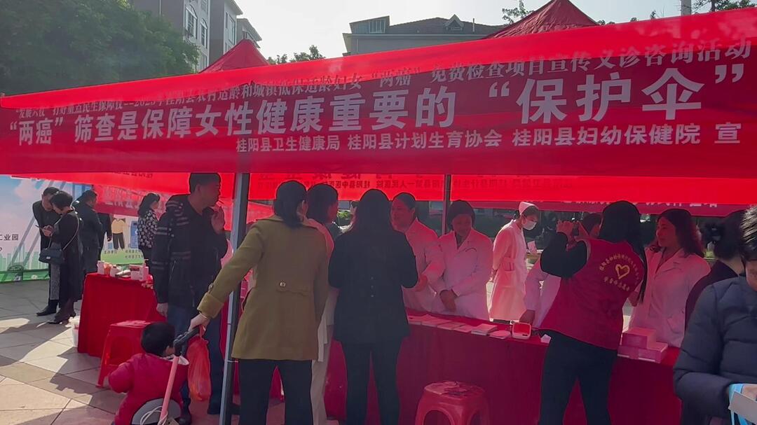 新桂阳4月28日讯(记者 谭明艳) 4月26日,2023年农村适龄和城镇低保适龄妇女“两癌”免费检查项目宣传义诊咨询活动在冠军公园开展。
