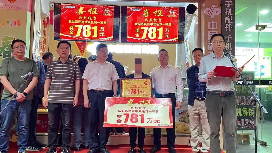 每到开奖当日,大奖来袭时,巨额的福彩奖金总能令人惊喜不断。2023年5月4日晚,双色球游戏第2023050期开奖结果揭晓,桂阳彩民摘得湖南省当期唯一一注双色球一等奖,奖金781万元。这是今年郴州市双色球游戏第二个一等大奖,桂阳县福彩品牌知名度进一步提升。