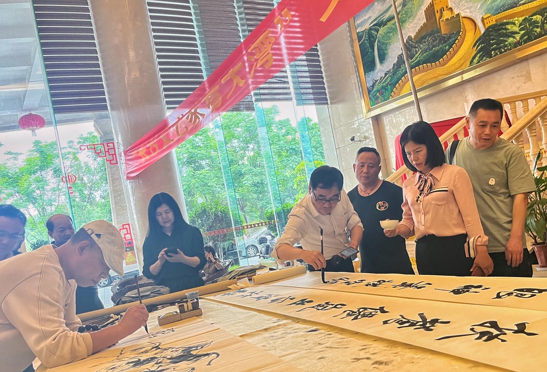 当天下午,文艺志愿者们凝神聚气,泼墨挥毫,书写夏寿田诗词和现场创作的对联,或以雄沉劲健、雍容端朴见长,或以俊秀潇洒、温婉流丽为胜,给人陶冶情操的雅逸美感。