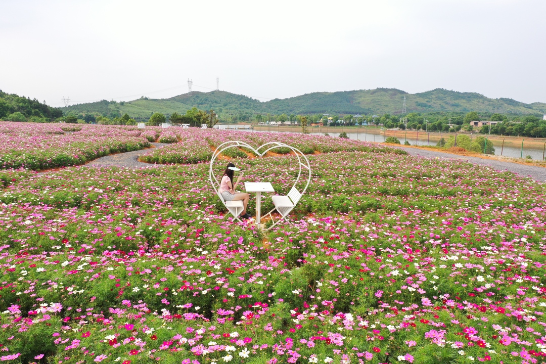 新桂阳5月23日讯(记者 廖诗卉 欧阳宇轩)碧野群芳开,美景入画来。初夏时节,在望湖生态庄园,百亩格桑花盛放,点缀着初夏的浪漫,游客们纷至沓来,邂逅如云似霞的花海。