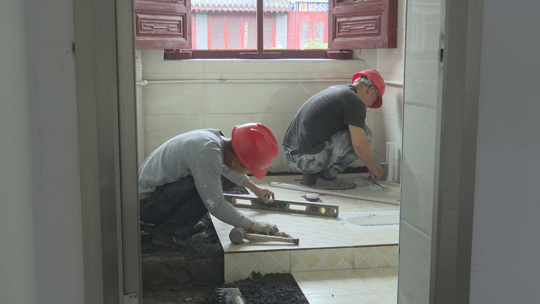 在施工现场,工人们正对13、15、16栋四合院的卫生间、电力、房间隔断进行改造。
